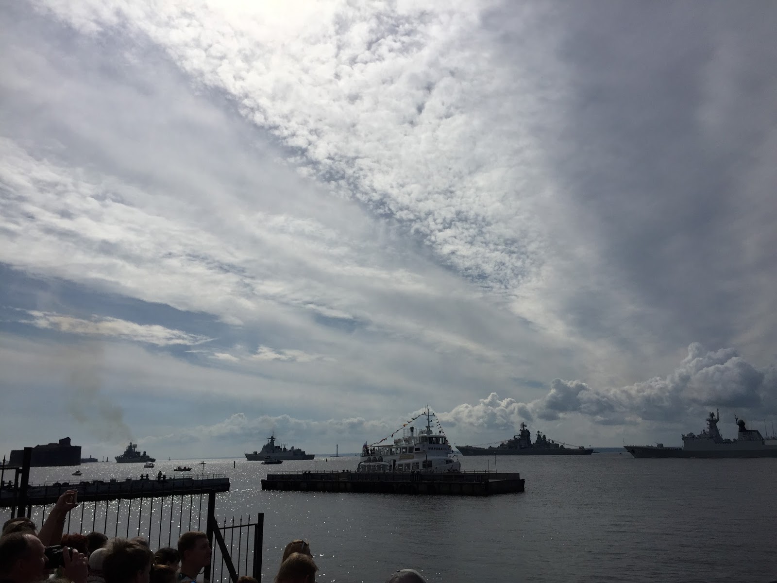 The ships were set to sail up the Neva River, but the crowds were sure to be huge, so I thought a vantage point near the Hermitage might not be the best viewing location. I decided to get a closer look at the parade with several of my colleagues, so we took a taxi to Kronstadt to see the larger ships come in from further out in the Baltic. Kronstadt is a town on Kotlin island in the Gulf of Finland (the eastern inlet of the Baltic Sea) that protects St. Petersburg from all manner of threats (storms or military invasions). Peter the Great built a fort there shortly after founding the city to protect against Swedish invasions, and the remains of numerous forts and military buildings are extant around the island.