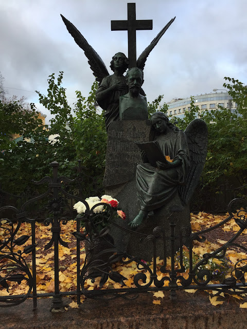 These cemeteries are both relatively small, and have perhaps the best ratio of famous to non-famous burials of any cemetery I've ever been to (not counting places like Westminster Abbey in London or the Cathedral of Saints Peter and Paul in St. Petersburg). Each one had a small museum - an exhibition hall with modern sculptures in the west cemetery and the burial vault of St. Lazarus in the eastern necropolis (known as the "Monument of Russian History and Culture XVIII-XIX Centuries", which was filled with grave markers and burials moved from other sites). Tikhvin Cemetery is a less-visited side of St. Petersburg, and I had the area mostly to myself on a gorgeous autumn day.